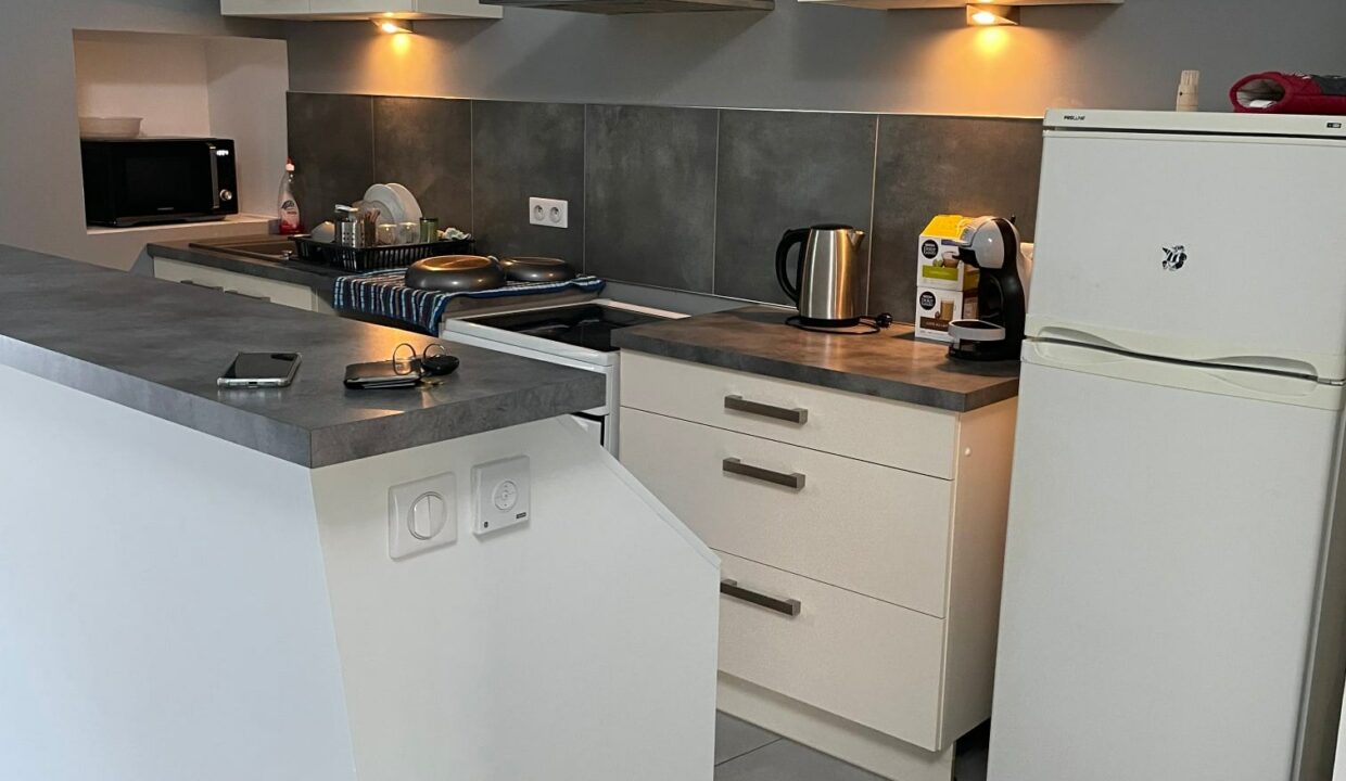 Il se compose d’une cuisine équipée ouverte sur le séjour, d’une chambre mansardée avec coin dressing et d’une salle d’eau.